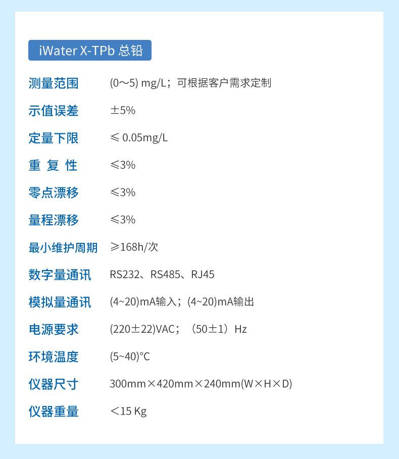 聯測在線水質重金屬檢測儀可監測:六價鉻/總鉻/總鐵/總/總銅/總鎳/總鋅/總鉛/總鍋/總鉑/總銀/總釩/總鎢/鋁/鈣離子。