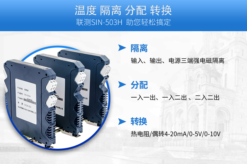 將PT100等熱電阻跟熱電偶信號(hào)轉(zhuǎn)換成各種電流、電壓等標(biāo)準(zhǔn)模擬量信號(hào),可以與PC機(jī)、PLC、DCS等實(shí)現(xiàn)工控監(jiān)測(cè)連接??垢蓴_能力強(qiáng),遠(yuǎn)傳不受其他設(shè)備影響。輸入、輸出選擇范圍寬,準(zhǔn)確度高。電源可選擇,導(dǎo)軌安裝便于檢測(cè)與安裝。廣泛應(yīng)用于各種對(duì)溫度集中測(cè)量的監(jiān)控系統(tǒng)中。