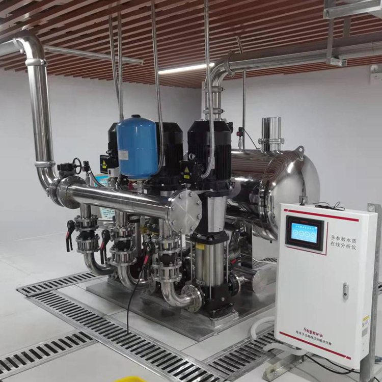 此次提升改造項(xiàng)目采用新型無負(fù)壓供水系統(tǒng)代替原有以水箱水池蓄水為基礎(chǔ)的二次供水系統(tǒng),對(duì)市政管網(wǎng)居民用水的水質(zhì)監(jiān)測提出了更高要求。