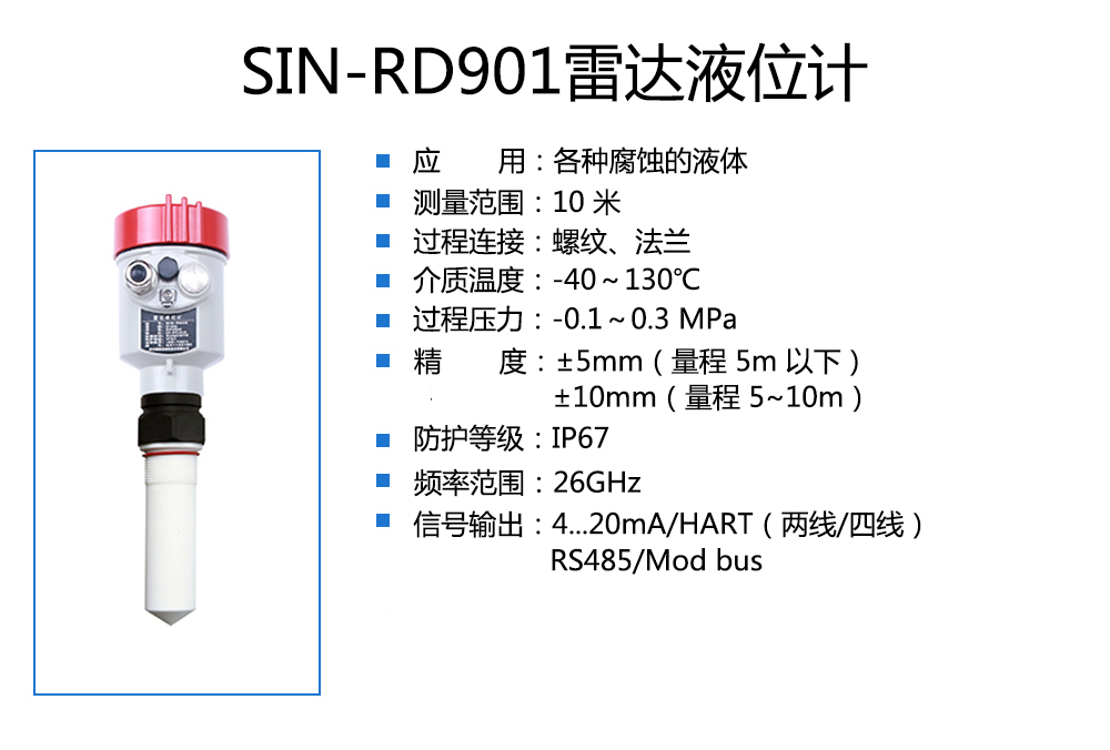 聯測_SIN-RD901雷達液位計_適用于各種腐蝕的液體_