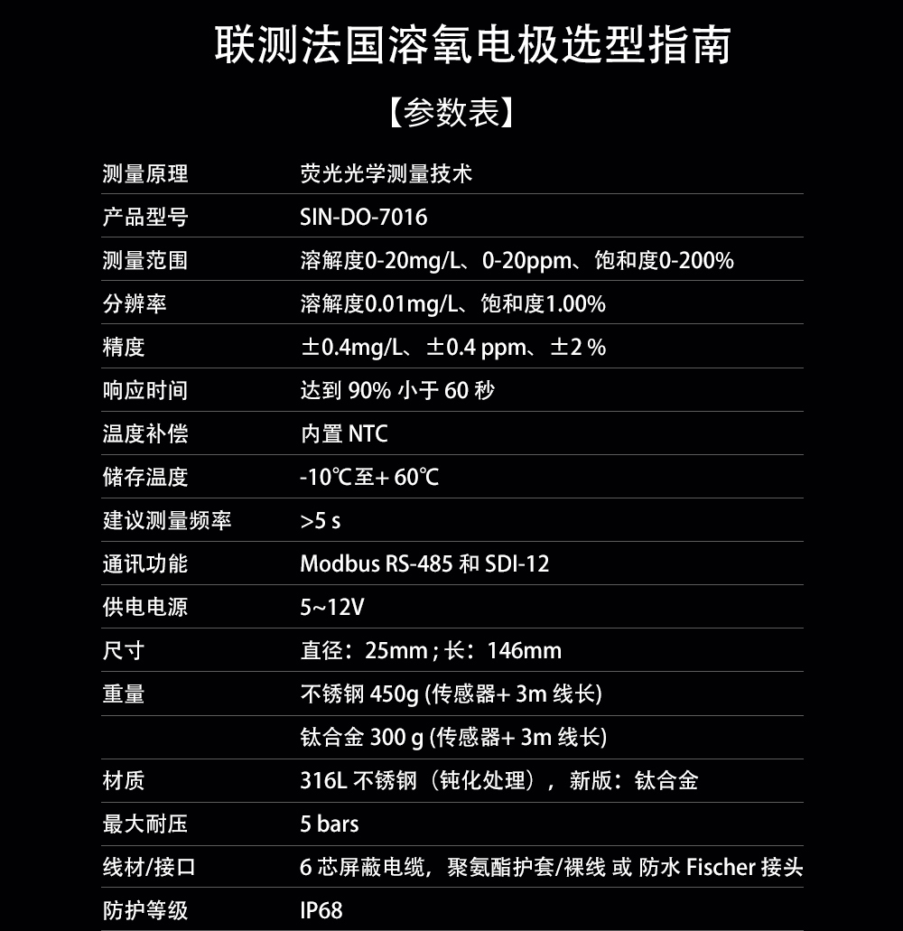 您的位置: 首頁 > 溶解氧儀 >聯測_SIN-DO-7016_法國進口在線熒光法溶解氧電極_曝氣池DO溶氧測定儀水含氧量監測儀電極_