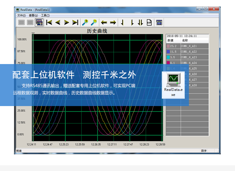 無紙記錄儀是將采集的數據/運算數據以時間為基軸記錄在儀器內部的存儲系統中,無消耗任何常用的記錄設施,如:紙張、筆墨。記錄在儀器內部的存儲數據,通過運算、模擬后顯示在液晶屏。常用顯示用液晶屏比較廣泛。在液晶屏屏幕上,可以顯示數字顯示、棒圖顯示、曲線顯示、報警列表等。無紙記錄儀采集的數據,常用的有:溫度、壓力、流量、液位、電壓、電流、濕度、頻率、振動、轉速等。