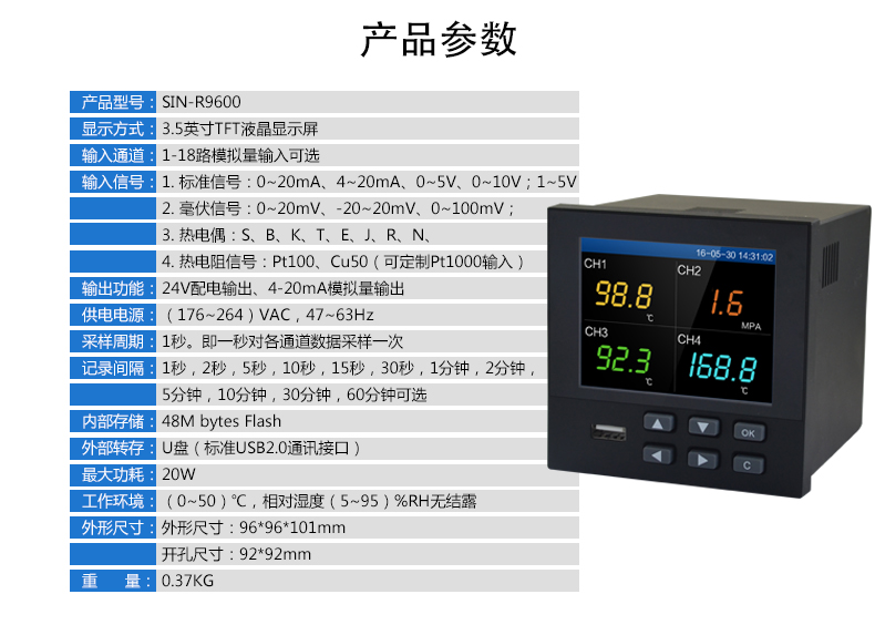 聯測_SIN-R9600_彩屏無紙記錄儀_1-18路輸入