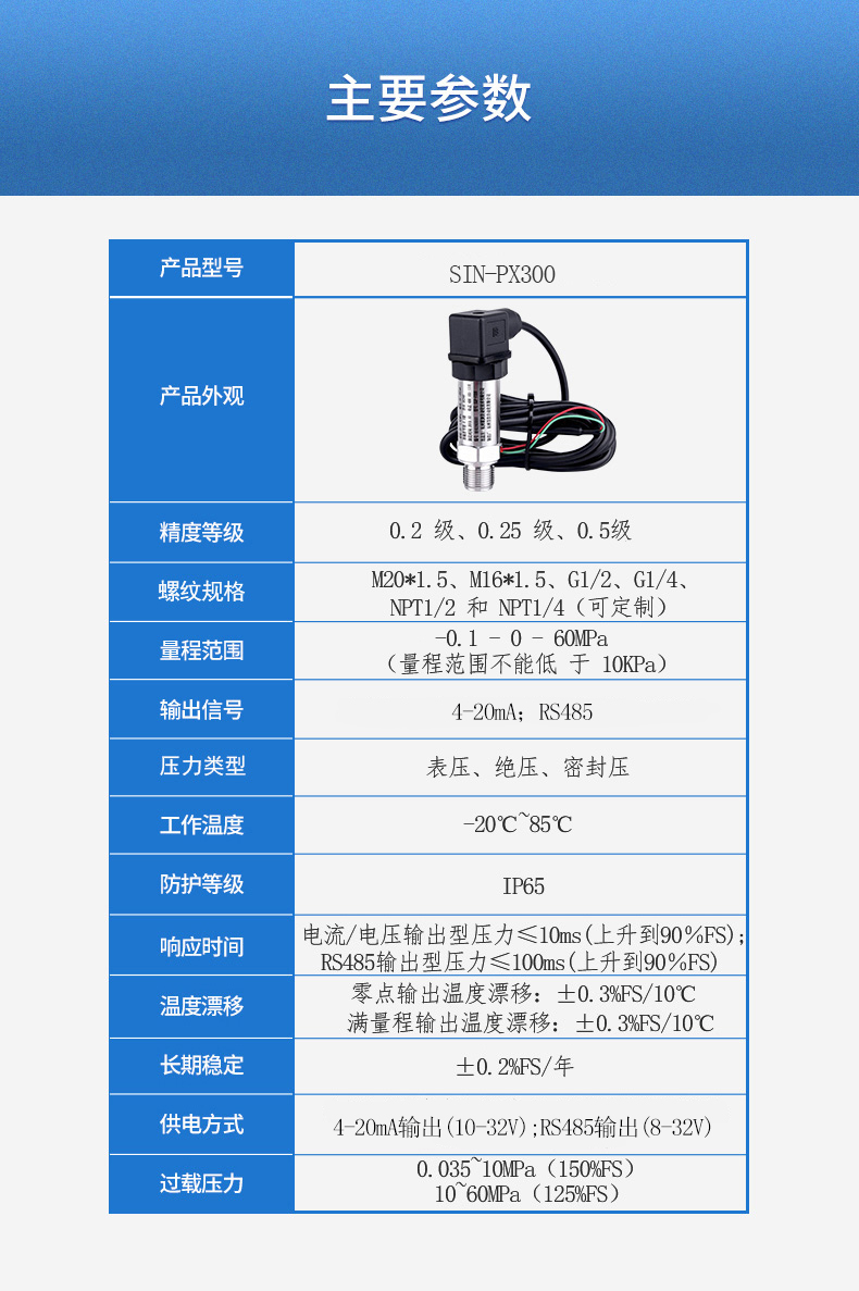 SIN-PX300型數(shù)顯壓力變送器采用無縫焊接結(jié)構(gòu),可批量化生產(chǎn),經(jīng)濟、可靠,具有良好的適應性,可應用于各種復雜的環(huán)境,該產(chǎn)品輸出形式多樣,壓力接口可提供定制,滿足您的使用需求。同時數(shù)顯壓力變送器帶有現(xiàn)場顯示功能,能夠更加直觀的顯示現(xiàn)場的壓力波動情況。廣泛應用于工業(yè)自動化設(shè)備配套以及石油、化工、冶金、電力等控制領(lǐng)域。
