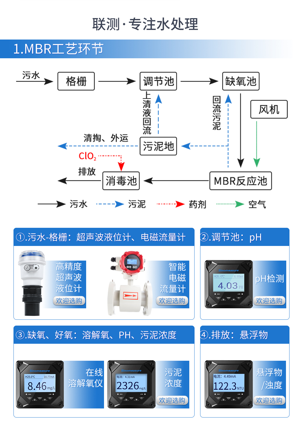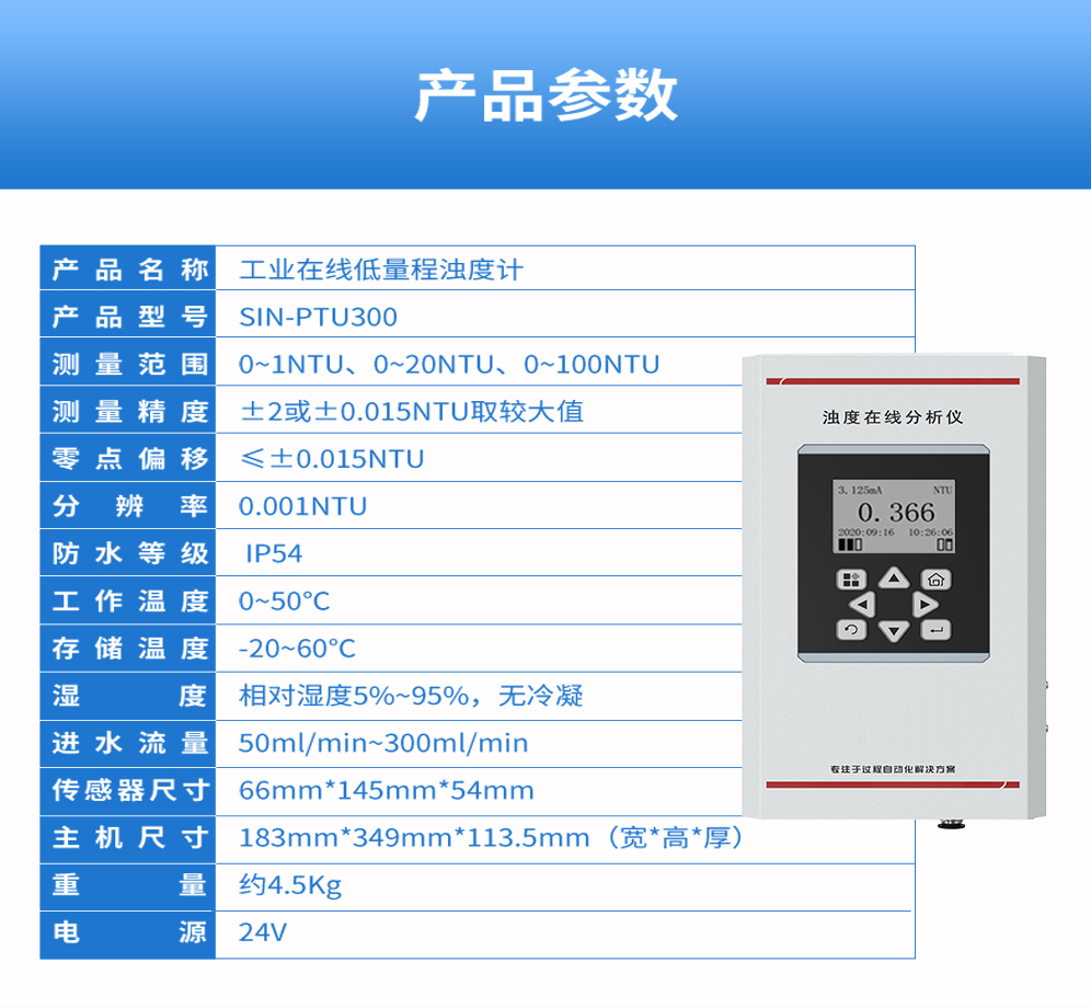 聯(lián)測_SIN-PTU300三個量程段規(guī)格,分別為0-1NTU量程段,0-20NTU量程段,0-100NTU量程段